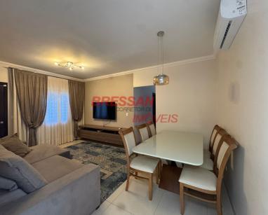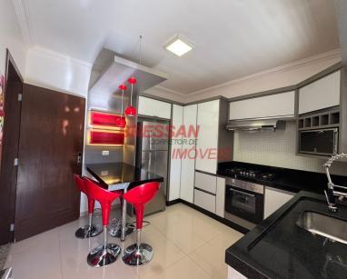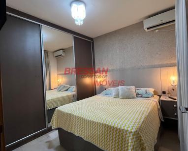 Sala de estar/jantar com: mesa com cadeiras; sofá; rack com painel; TV. Cozinha com: geladeira ; microondas ; forno ; fogão ; coifa ; ar-condicionado; painel; 02 banquetas; armários planejados e torneira elétrica. Lavanderia com: balcões; maquina de lavar; Banheiro - com: balcão e espelho. Quarto 01 com: guarda-roupas; painel de TV; penteadeira; ar-condicionado e balcão no banheiro. Quarto 02 com: cama; guarda-roupas e ar-condicionado. Quarto 03 com: armários; ar-condicionado e cama. Informação:
